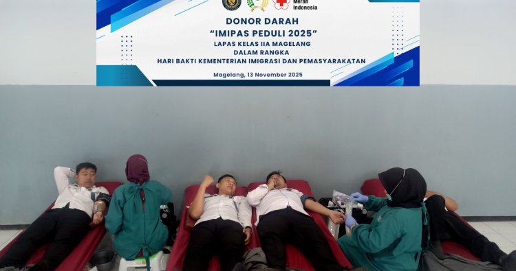 Magelang – Dalam rangka memperingati Hari Bakti Kementerian Imigrasi dan Pemasyarakatan (IMIPAS) ke-1 Tahun 2025, pegawai Lembaga Pemasyarakatan (Lapas) Kelas.in9IIA Magelang turut berpartisipasi dalam kegiatan donor darah sebagai wujud nyata kepedulian terhadap sesama.