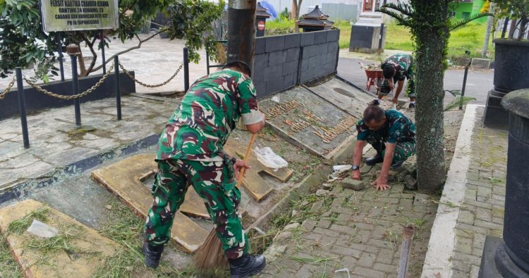 Ciptakan Lingkungan Asri, Anggota Koramil 23/Magelang Utara Bersihkan Pangkalan