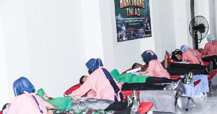 Donor darah dalam rangkaian peringatan Hari Juang TNI-AD ke 80 Tahun 2025 yang di inisiasi oleh Kodim 0705/Magelang bersama PMI Kota Magelang dan diikuti oleh jajaran TNI-Polri, Kejaksaan, Satpol PP Kota Magelang, Persit KCK Cabang XXV dan jajaran Ranting yang ada di wilayah kodim Magelang dan personil militer se - Garnesun Magelang tersebut digelar untuk membantu PMI Kota Magelang dalam mencukupi stok darah.