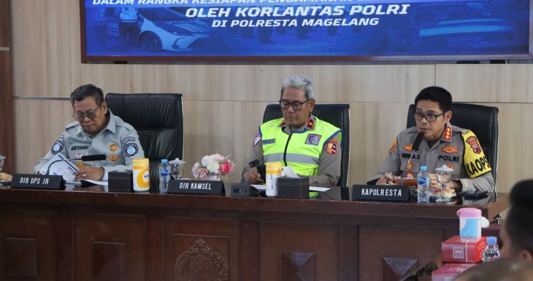 MAGELANG - Polresta Magelang menjadi salah satu titik strategis pelaksanaan Penelitian Terpadu Korps Lalu Lintas (Korlantas) Polri dalam rangka mematangkan kesiapan pengamanan arus mudik dan balik Lebaran 2026. Kegiatan ini digelar di Aula Mapolresta Magelang, Rabu (4/2/2026), sebagai bagian dari pemetaan jalur Pantura dan Pansela Provinsi Jawa Tengah.