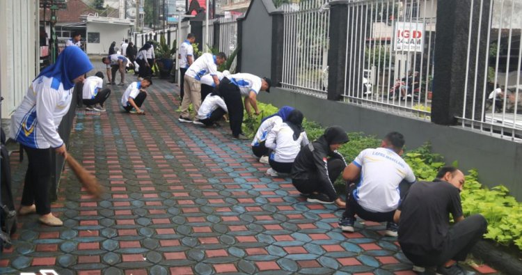Kegiatan difokuskan pada pembersihan lingkungan kantor, area hunian, serta sarana pendukung lainnya.
